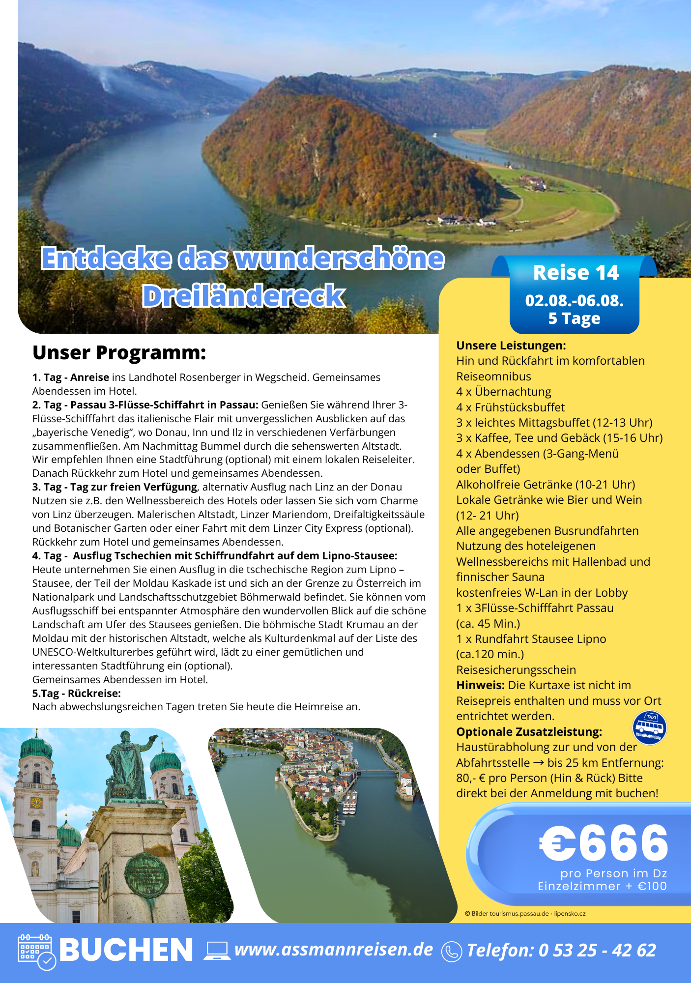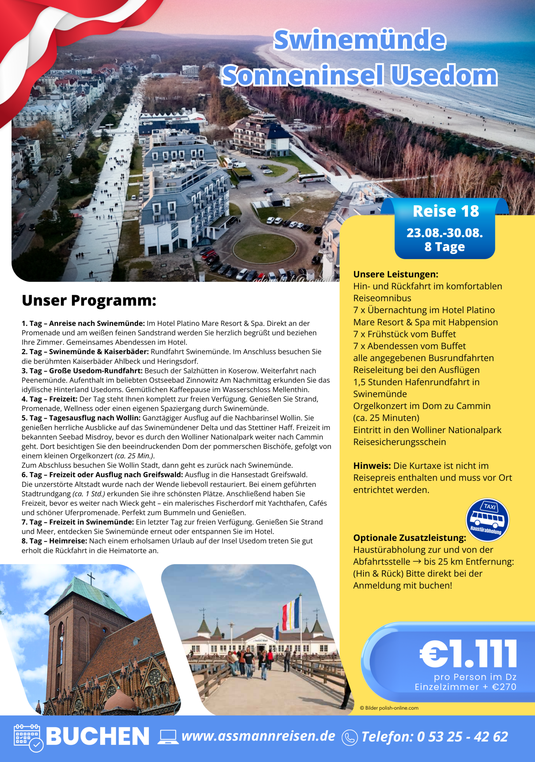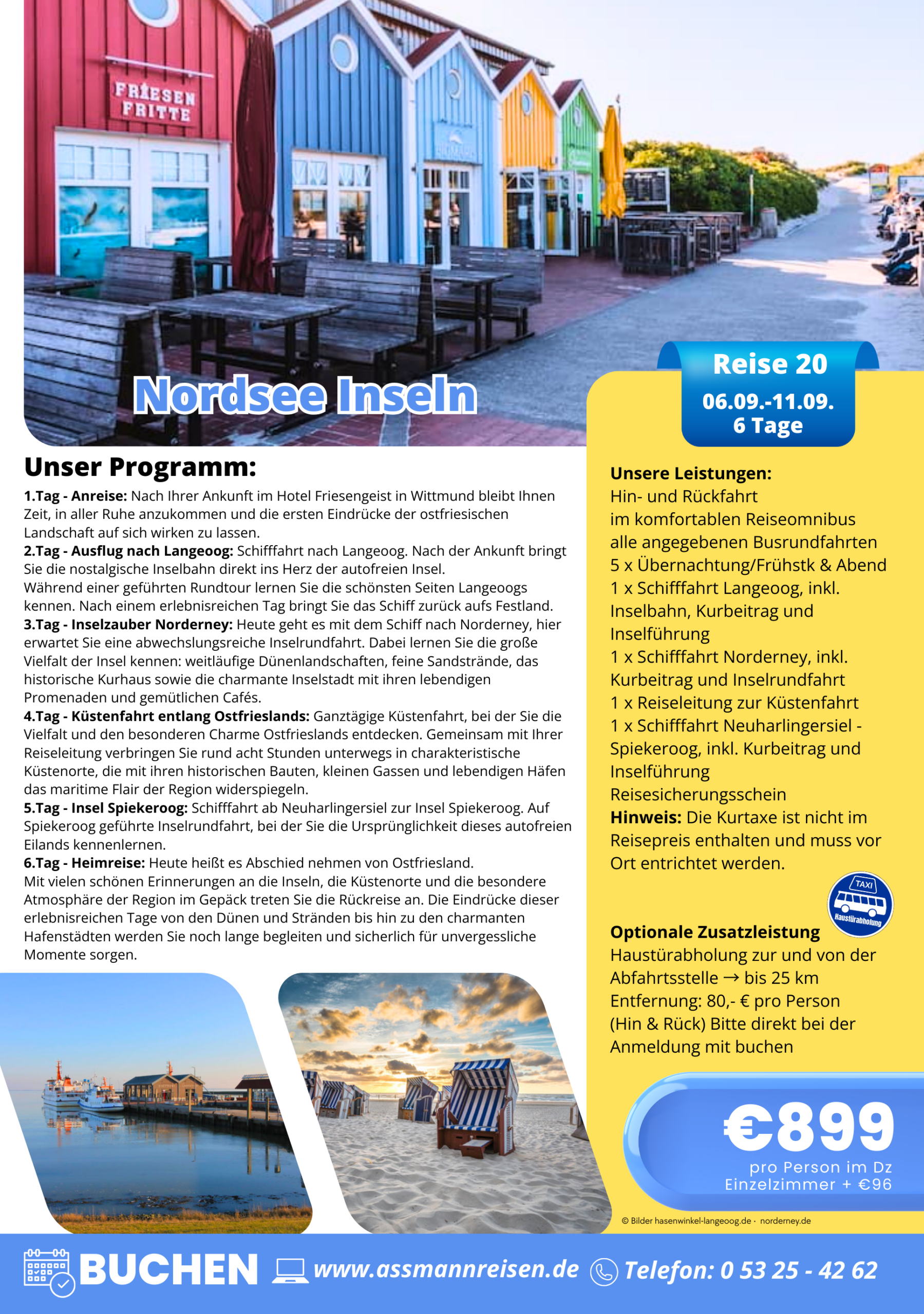 Reisen bedeutet für uns seit jeher mehr als nur unterwegs zu sein. Es geht um Vertrauen, um Sicherheit, um gute Gespräche und darum, sich einfach wohlzufühlen. Genau deshalb werden alle Reisen auch weiterhin persönlich von Thomas oder Nico Aßmann begleitet, vom ersten Willkommen bis zur sicheren Rückkehr nach Hause. Außergewöhnlich persönlich eben!