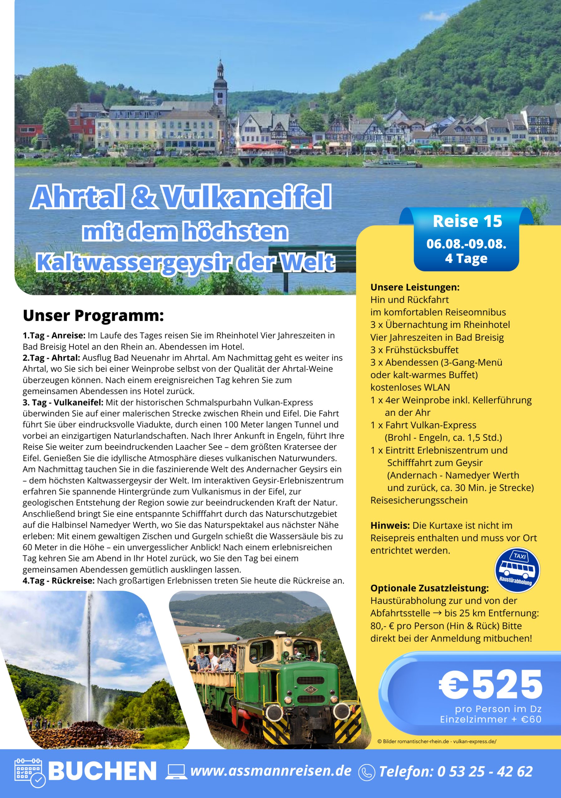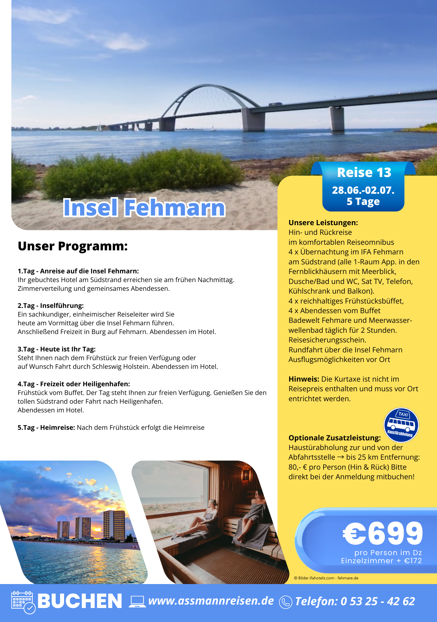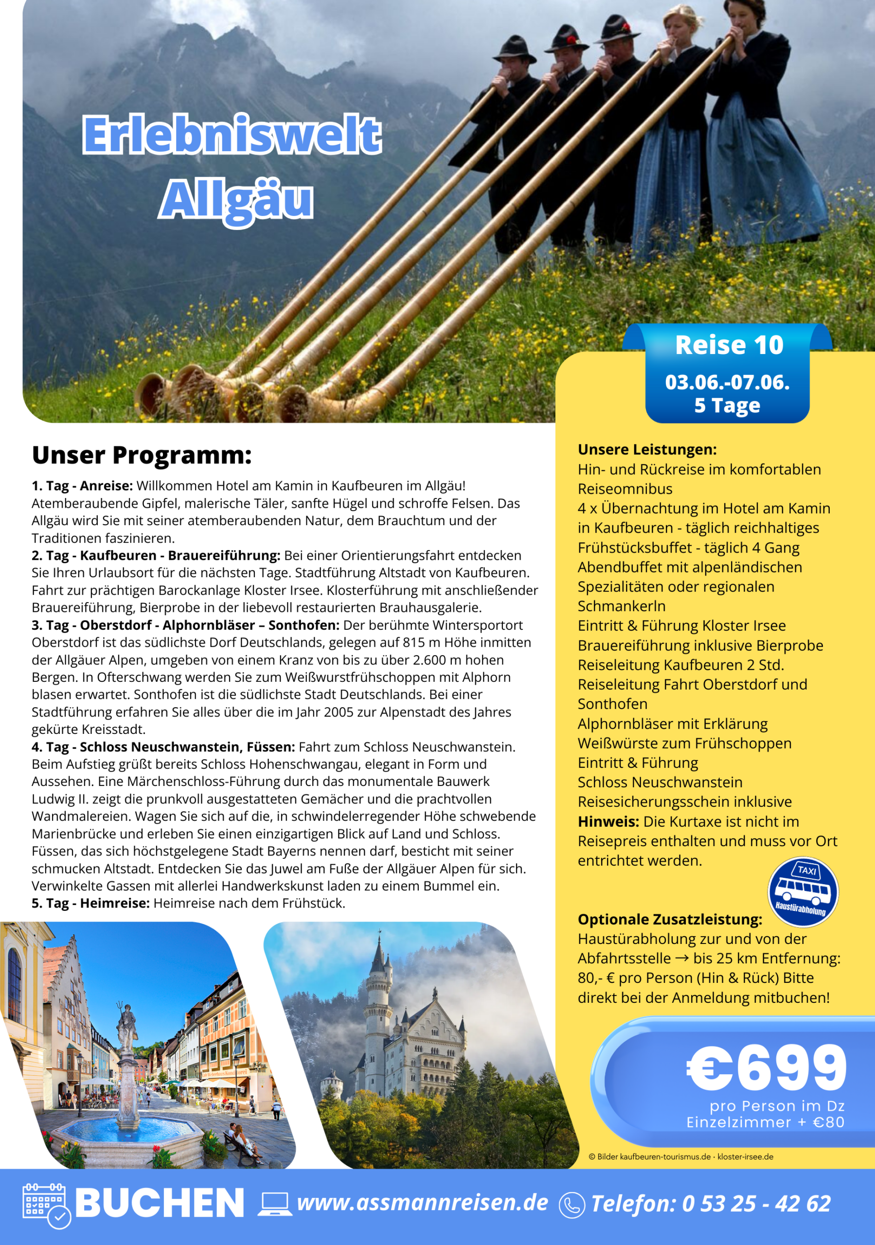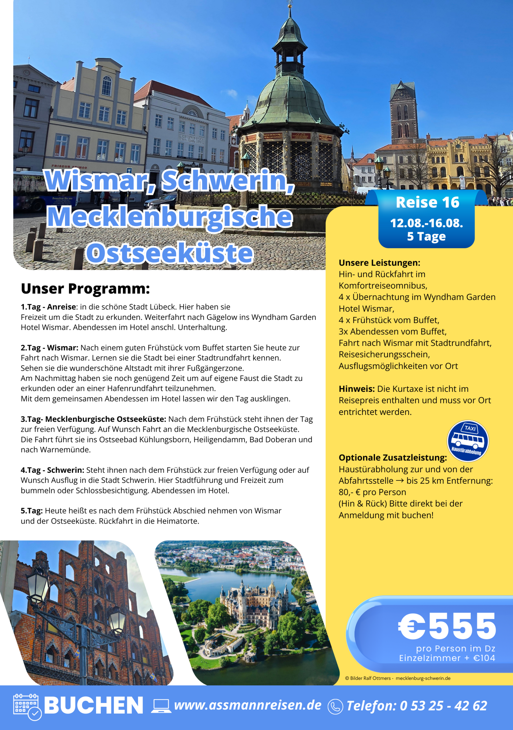 Reisen bedeutet für uns seit jeher mehr als nur unterwegs zu sein. Es geht um Vertrauen, um Sicherheit, um gute Gespräche und darum, sich einfach wohlzufühlen. Genau deshalb werden alle Reisen auch weiterhin persönlich von Thomas oder Nico Aßmann begleitet, vom ersten Willkommen bis zur sicheren Rückkehr nach Hause. Außergewöhnlich persönlich eben!