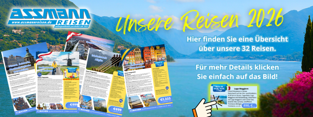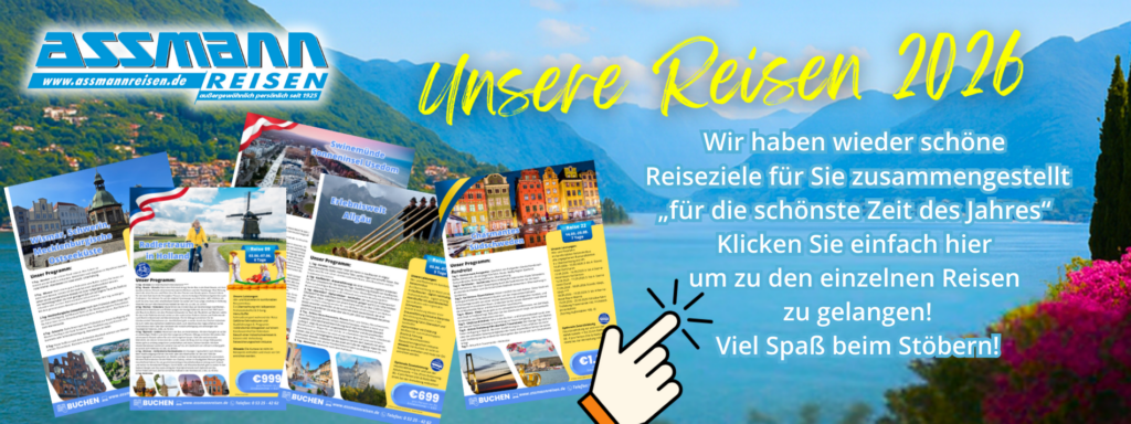 2025 durften wir gemeinsam mit Ihnen 100 Jahre Aßmann Reisen feiern. Ein Jubiläum, das uns sehr berührt hat. Die vielen lieben Worte, Glückwünsche und persönlichen Begegnungen haben uns gezeigt, wie eng wir über all die Jahre miteinander verbunden sind.